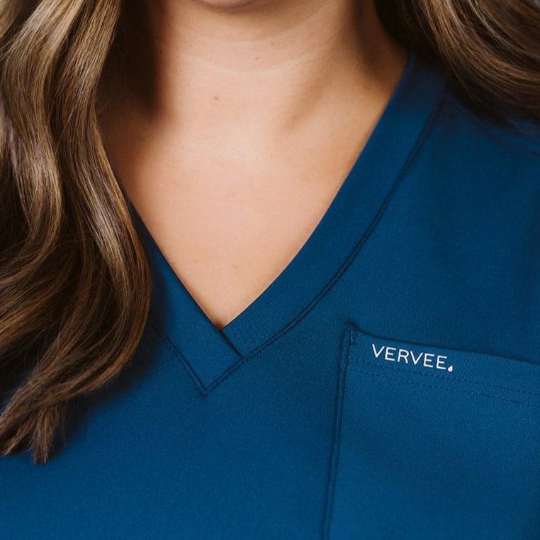 Our premium fabric is thicker than most scrubs—blending 80% polyester and 20% spandex for max stretch, structure, and all-day comfort. Plus, it’s got a subtle glow in the right light.