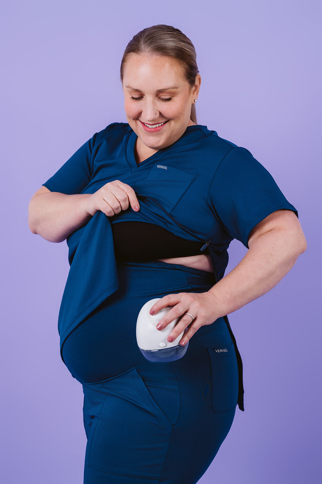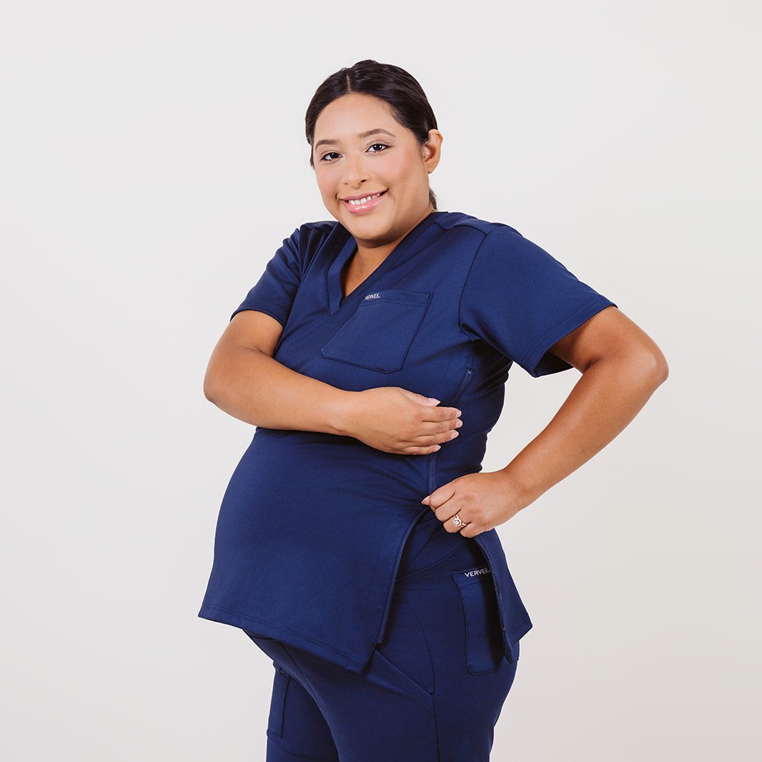 The Scrub Top with Zippers is the ultimate multitasker, just like you. Featuring our patent-pending side zippers, this top makes nursing and pumping during your shift a breeze—no awkward breaks, no exposure. It’s designed to grow with your belly and keep you comfortable postpartum, with fabric that stretches but never clings. Effortless, discreet, and ready for anything, this top has your back (and your front) from bump to baby and beyond.